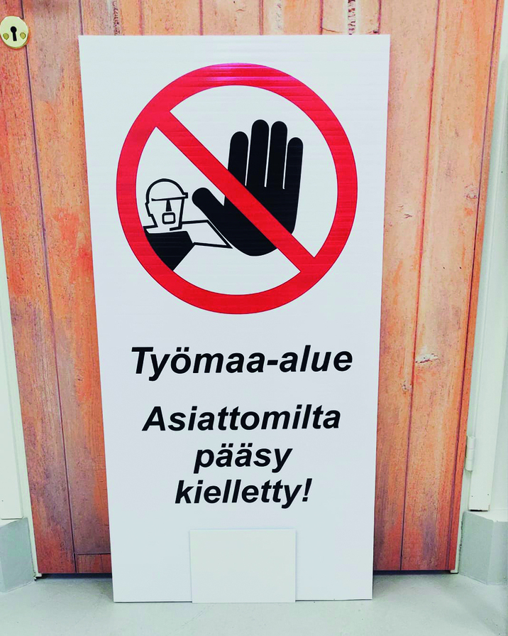 • Tarjoamme laajan valikoiman työmaatauluja, varoituskilpiä, alueopasteita, logotarroja sekä banderolleja, jotka kaikki voidaan kiinnittää työmaa-aidoille.